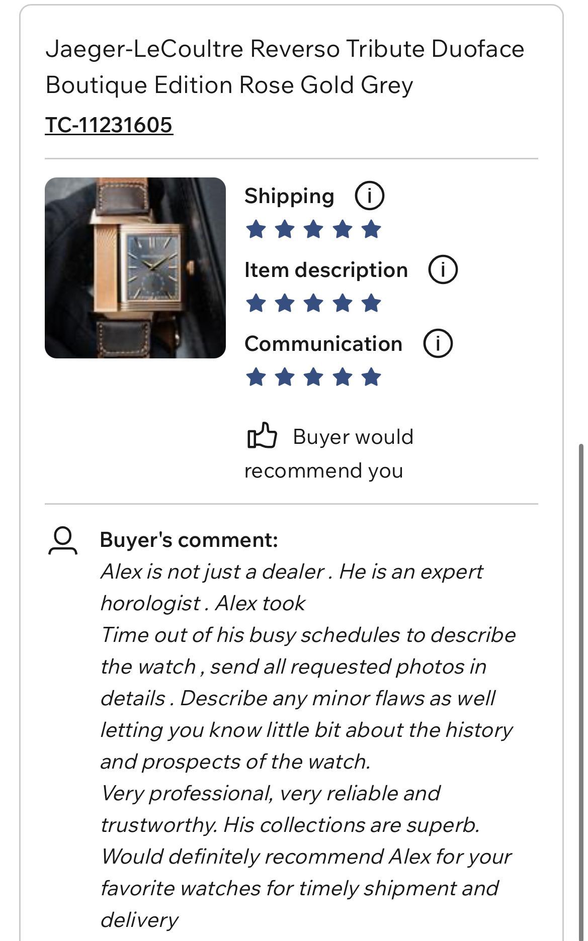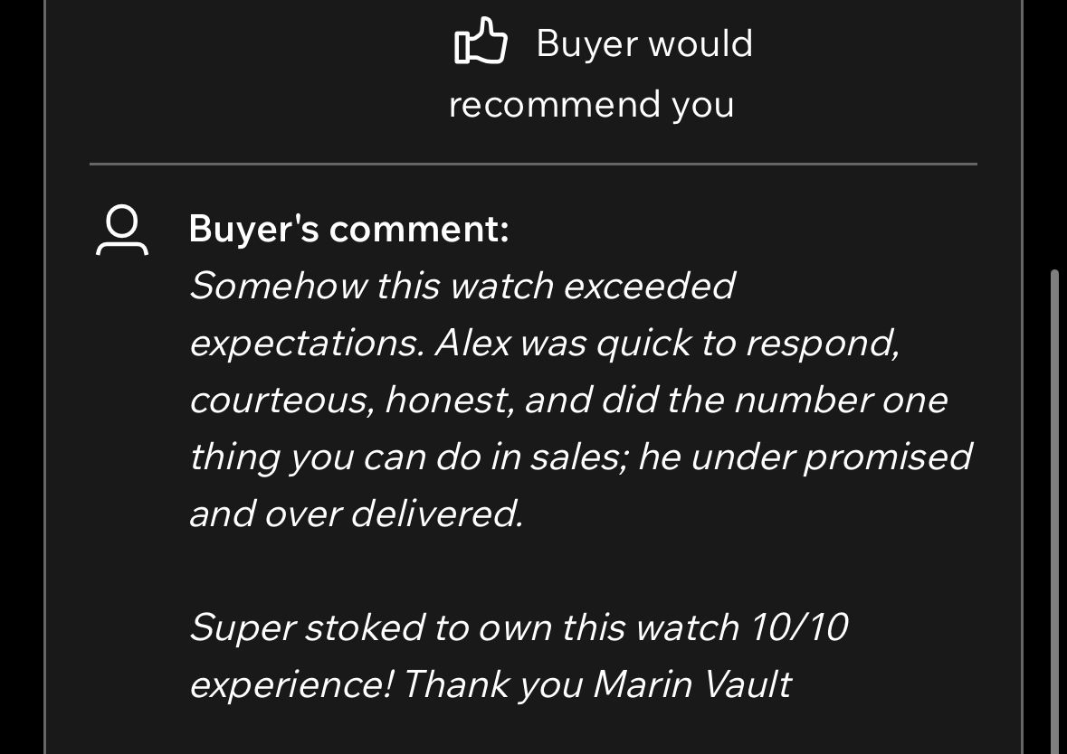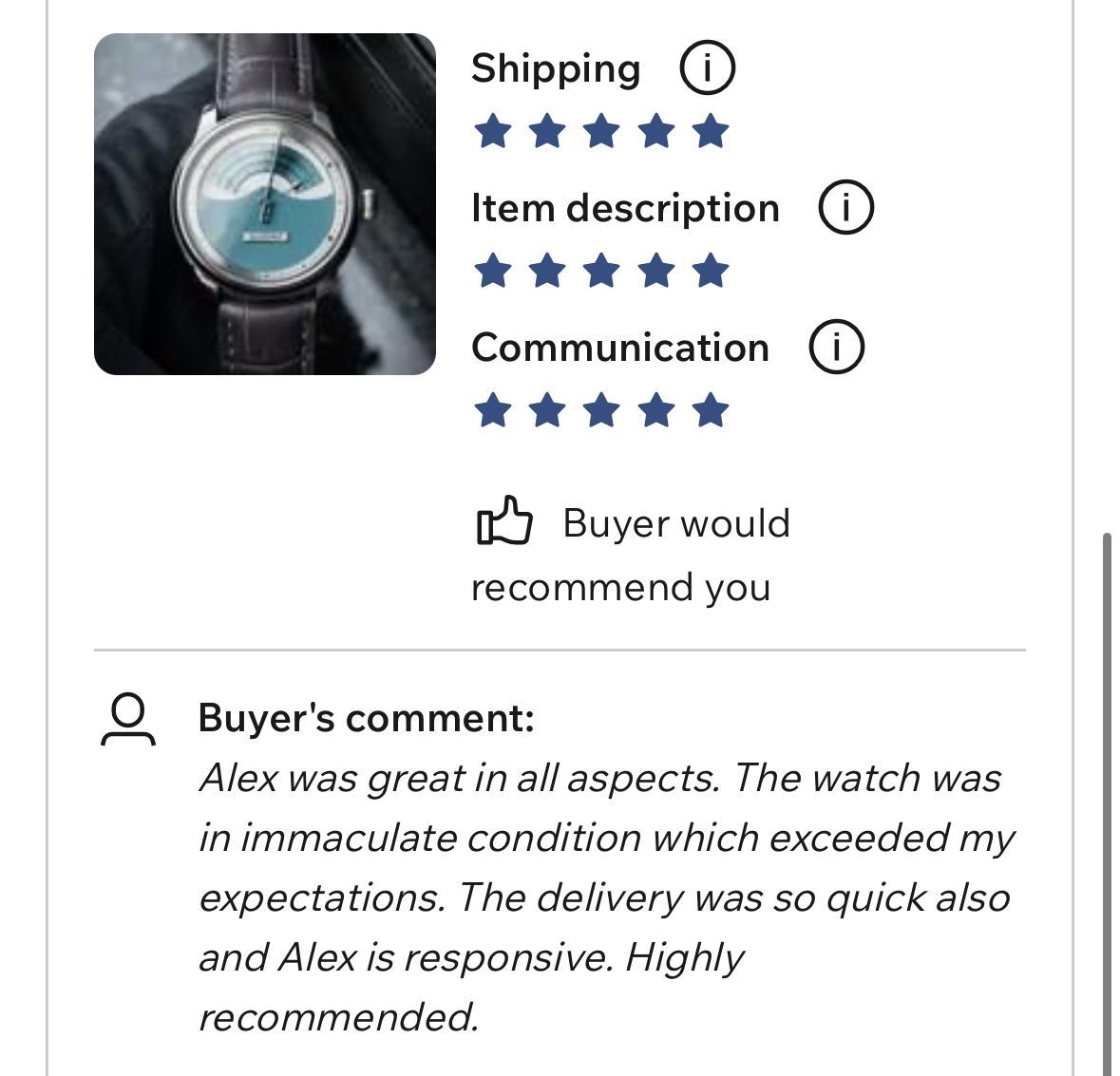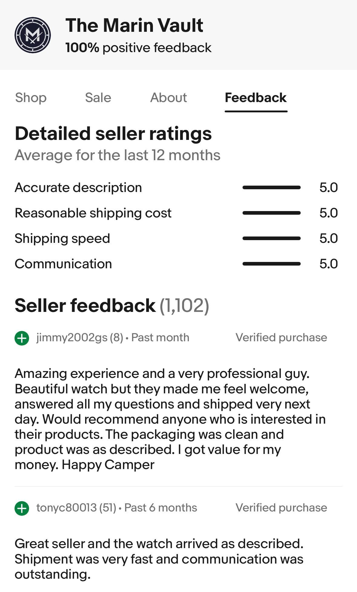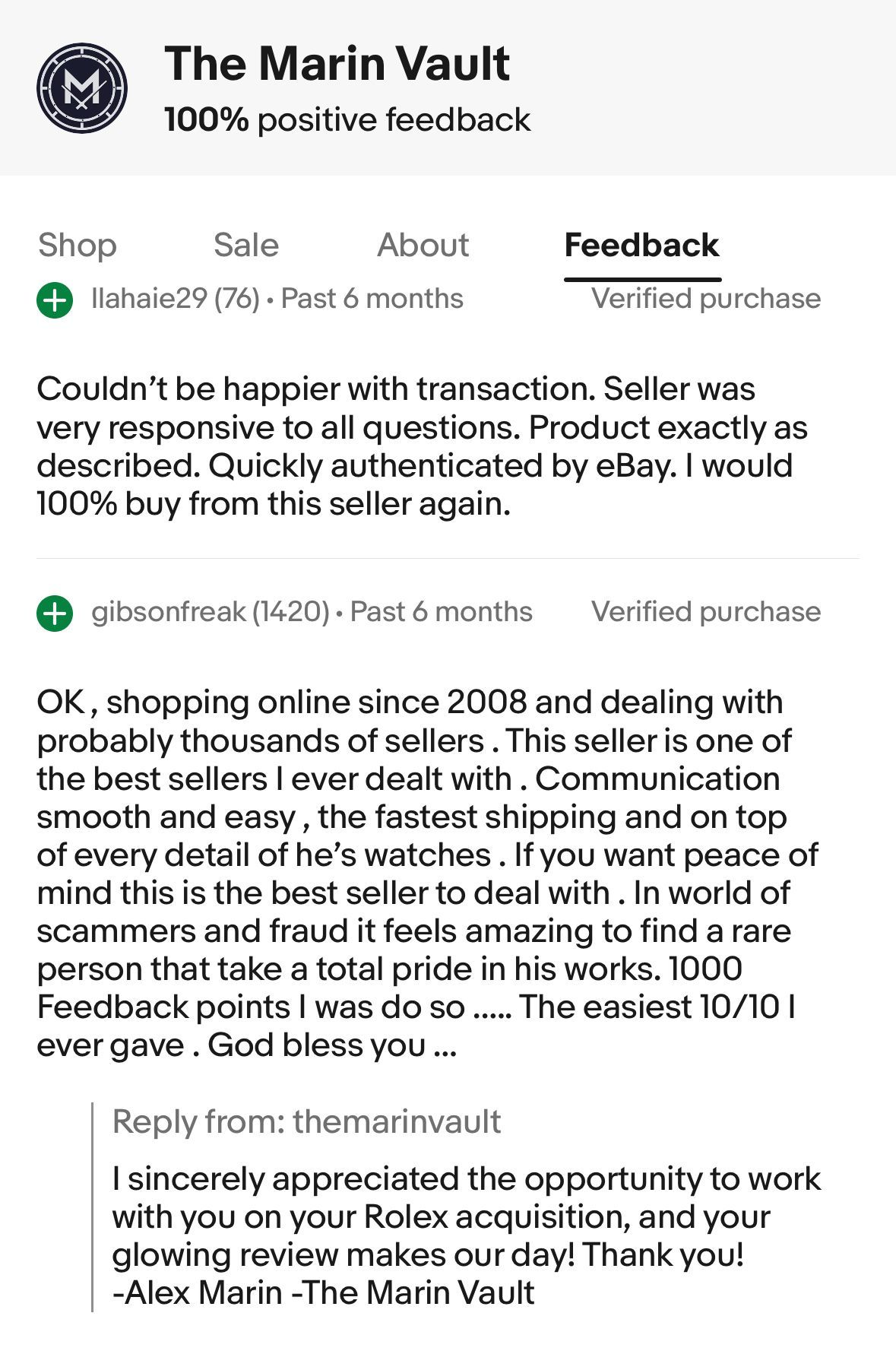 We maintain a 5 Star rating on Ebay, Google, Chrono24, and through social media. See what our customers have to say: