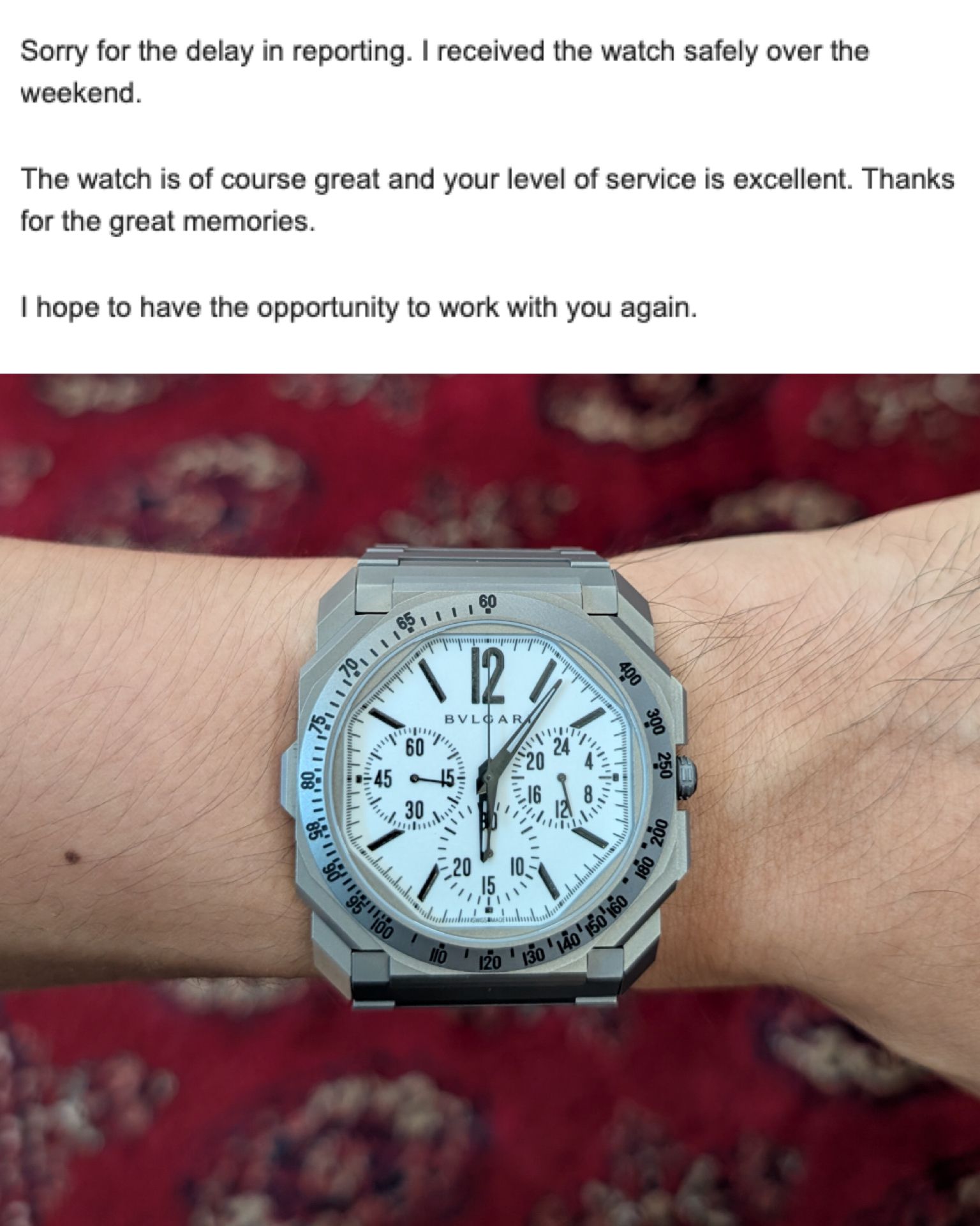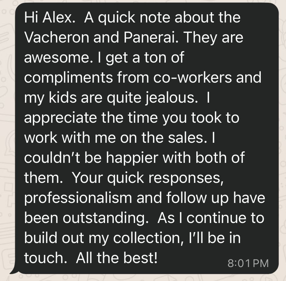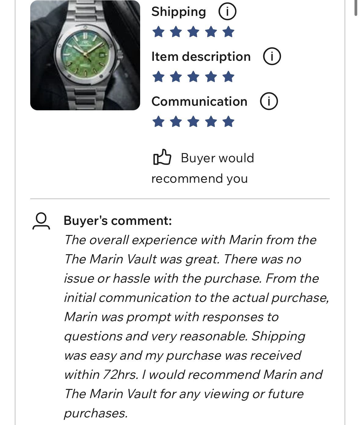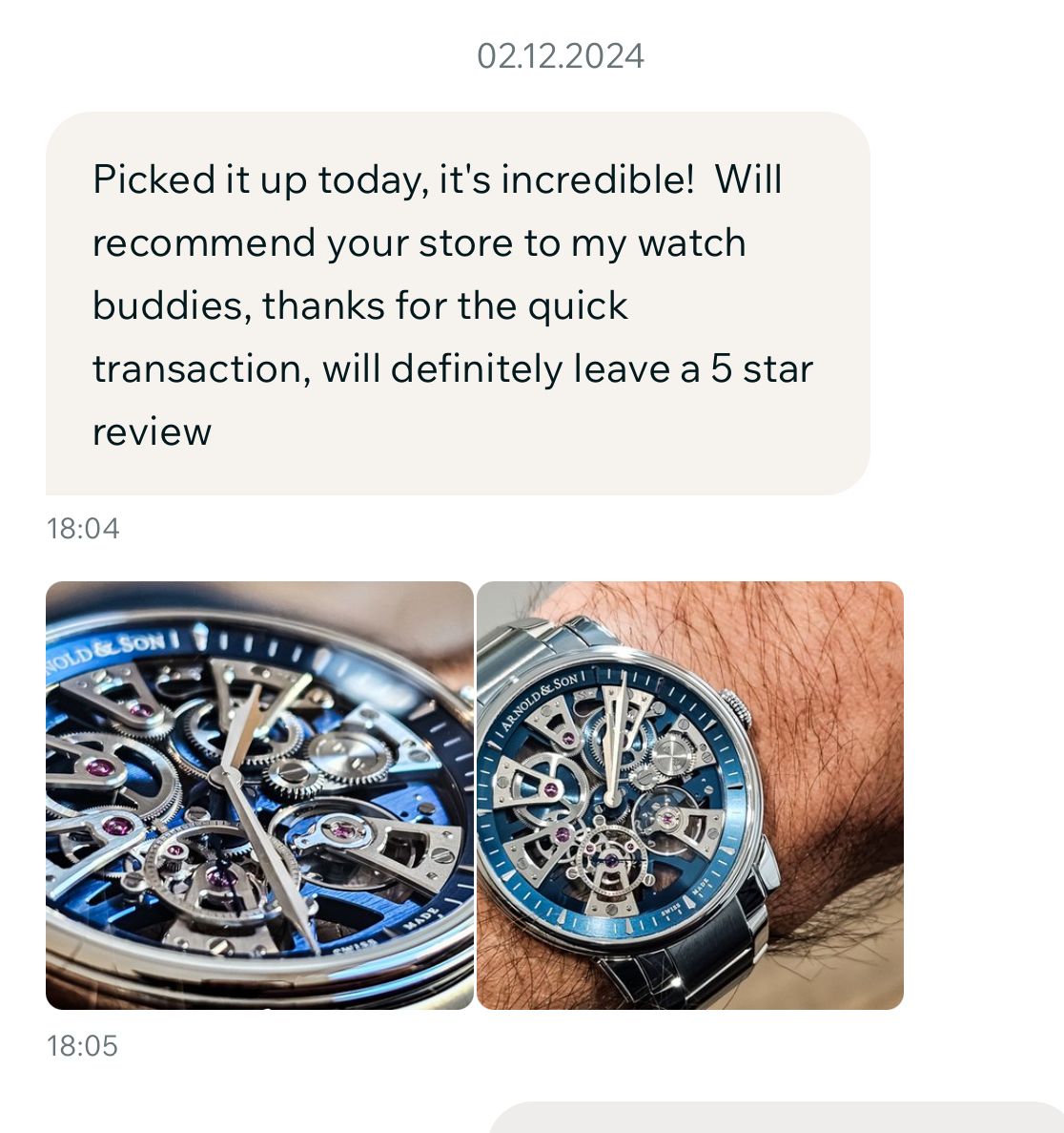 We maintain a 5 Star rating on Ebay, Google, Chrono24, and through social media. See what our customers have to say: